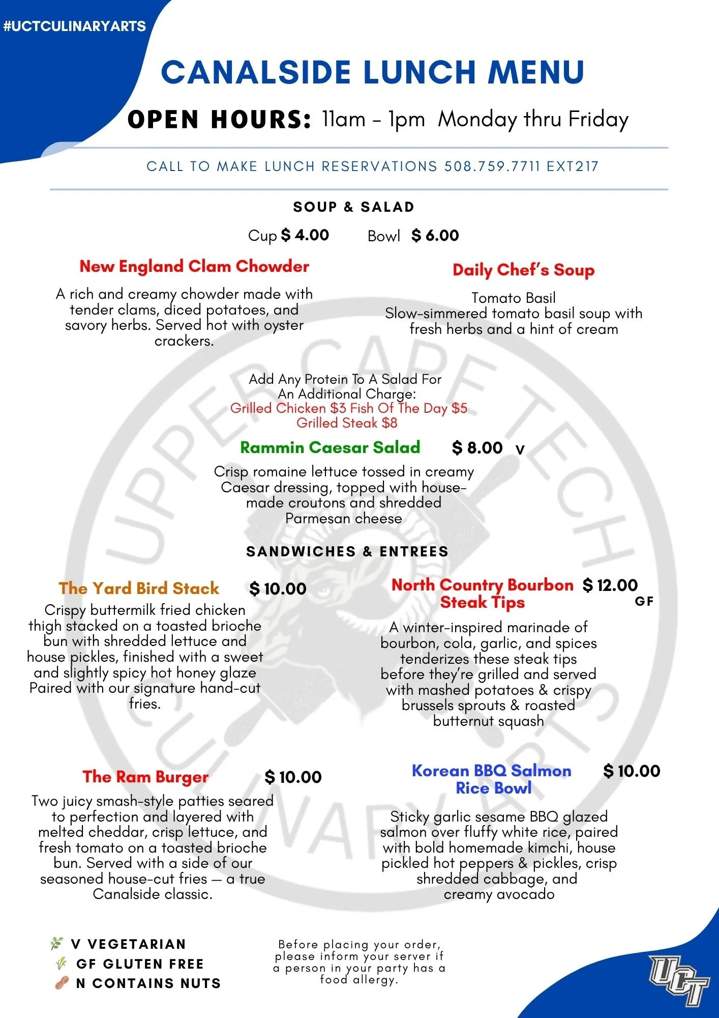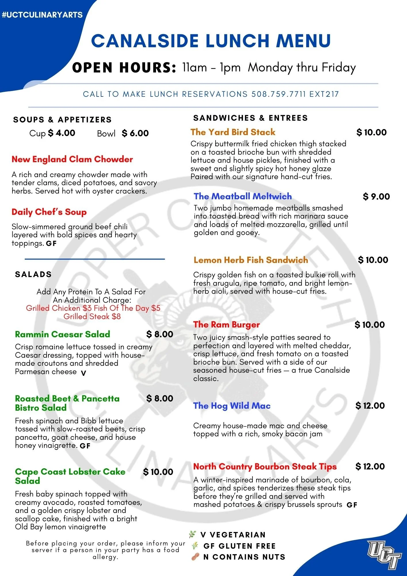 Welcome to Canalside Restaurant, where Upper Cape Cod Regional Technical School Culinary Arts students gain practical experience while serving up gastronomic delights!